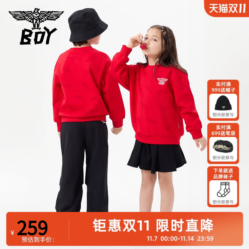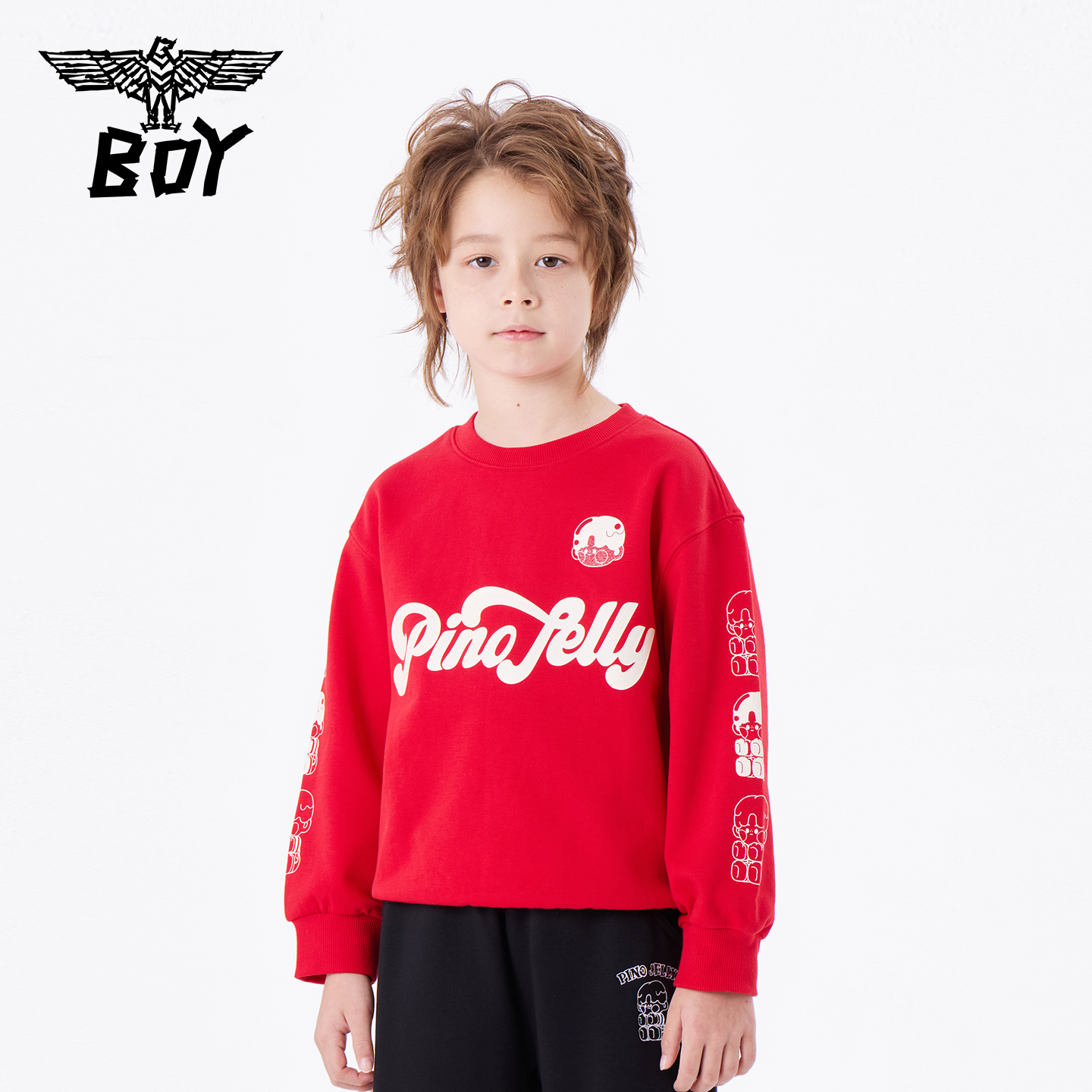 BOY童装 春秋季儿童圆领套头卫衣百搭logo印花时尚潮酷穿搭男女童