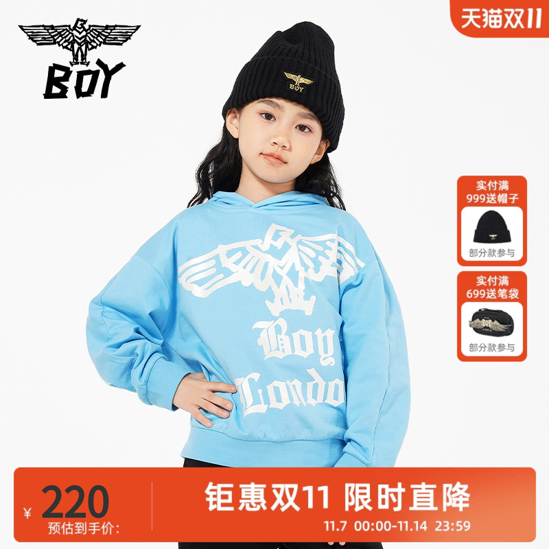 BOY童装25秋冬新款儿童连帽卫衣时尚潮流休闲套头衫男女童中大童