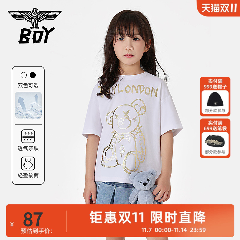 [季末特惠]BOY童装【布偶小熊】夏短袖可爱童趣烫金印花T恤男女