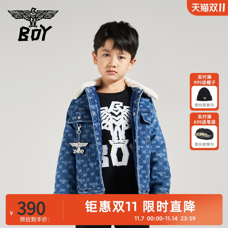 BOY童装 秋冬儿童保暖加厚logo绣花梭织外套时尚百搭男女童中大童