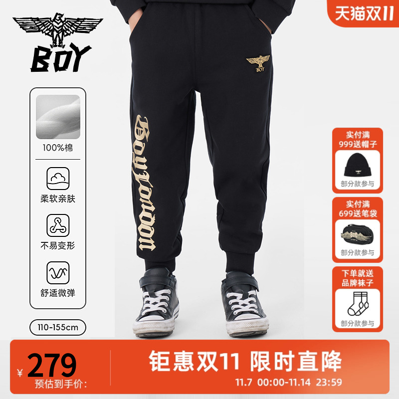 BOY童装 儿童春秋季运动裤字母印花潮流宽松束脚长裤男女童中大童