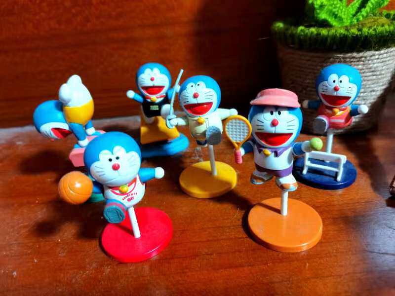 正版!机器猫哆啦A梦运动员6件套公仔玩具摆件礼品送女友生日礼物