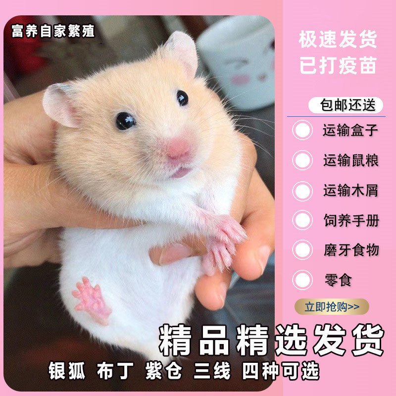 家养宠物小仓鼠活物侏儒三线银狐布丁老公公奶茶金丝熊宝宝活体鼠