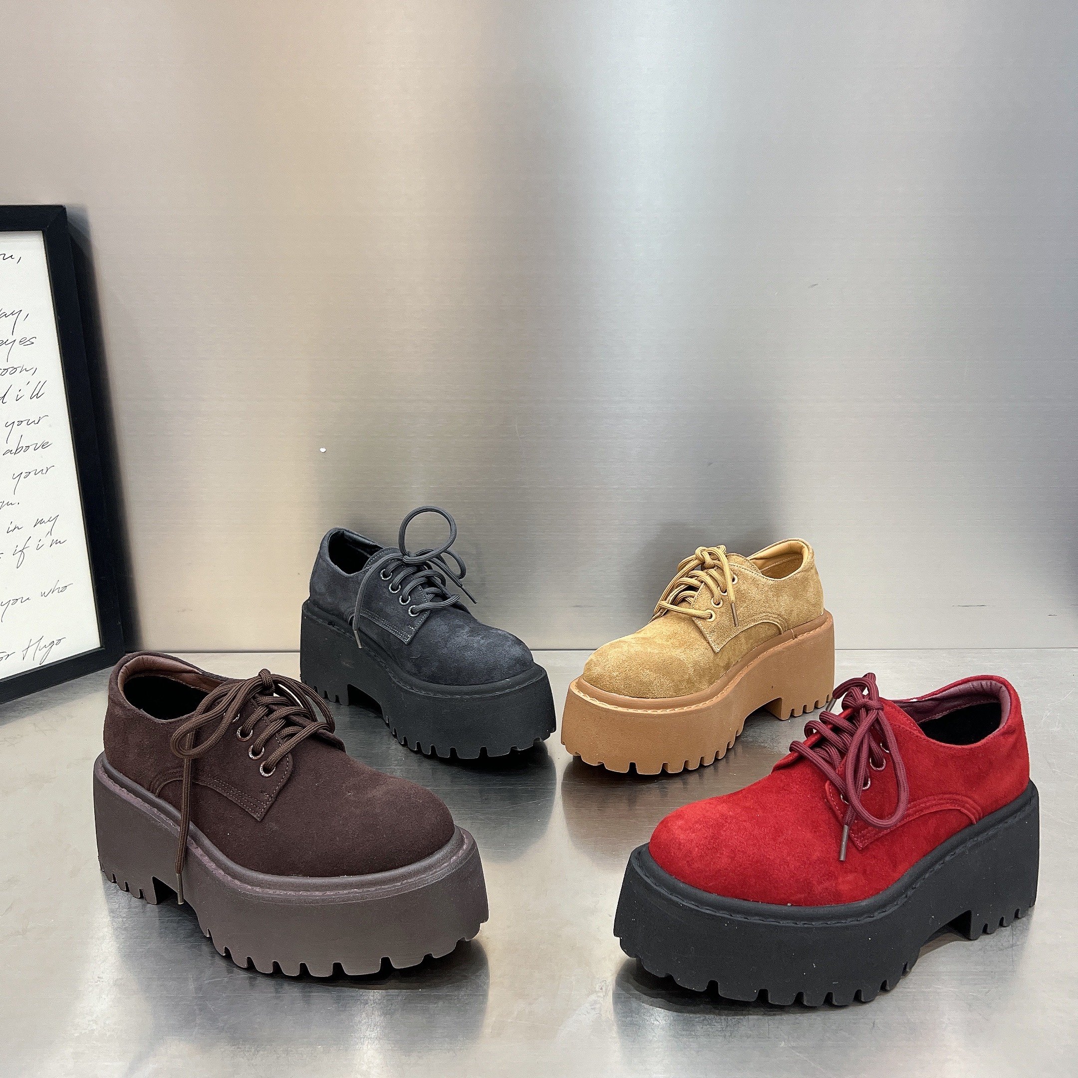 欧货磨砂皮乐福鞋女2026新款厚底松糕尖头单鞋休闲鞋小个子低帮鞋