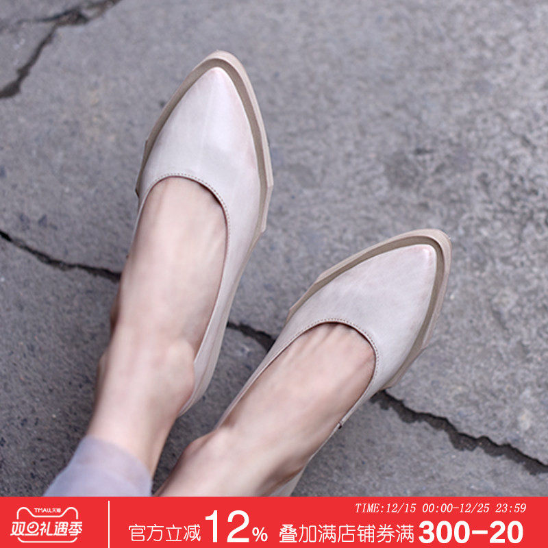 Artmu阿木原创简约牛皮尖头浅口单鞋女舒适防水台坡跟松糕厚底鞋