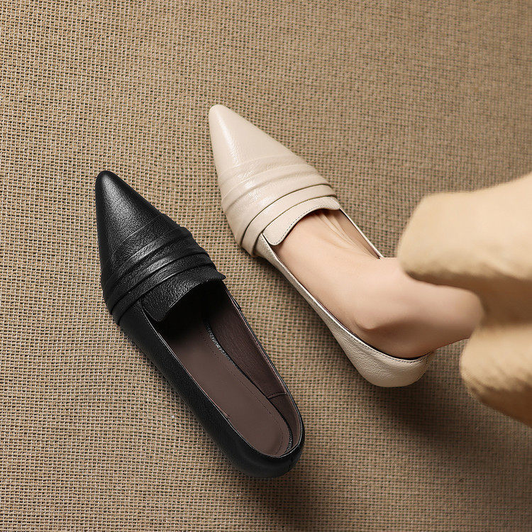 正品真皮巨好看尖头厚底单鞋女2025新款复古休闲松糕底鞋洋气百搭