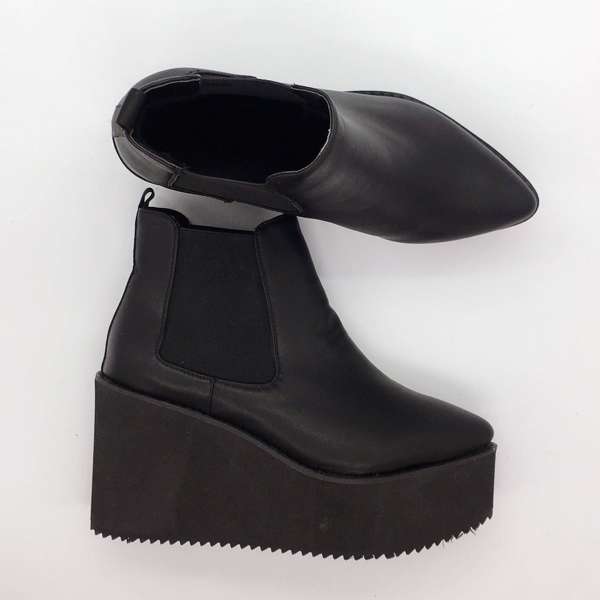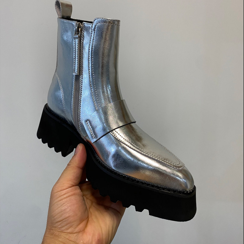 真皮时髦尖头防水台厚底英伦风马丁靴女松糕鞋女街头切尔西短靴女