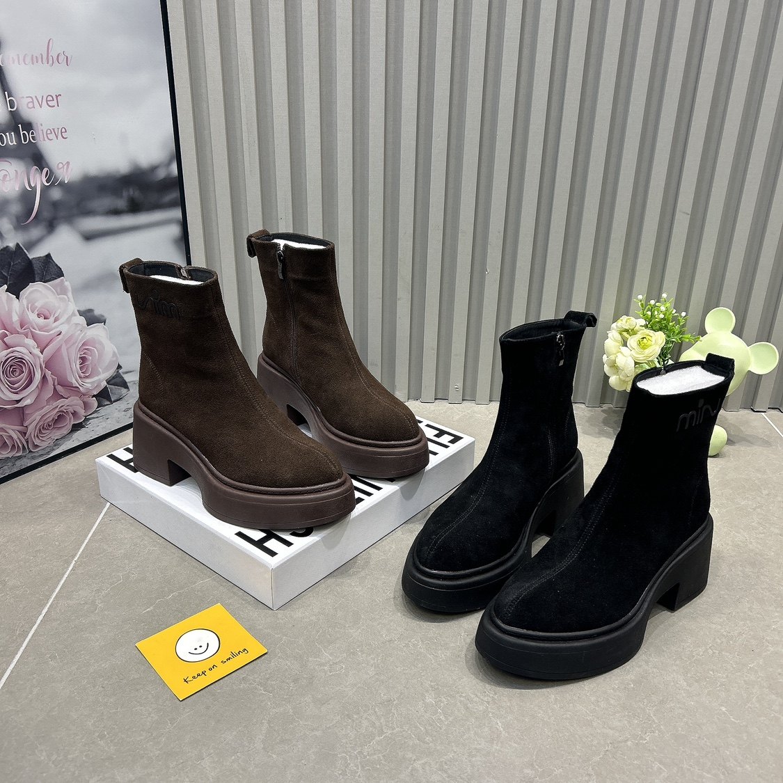复古尖头小短靴女磨砂皮2025年秋冬新款松糕厚底加绒增高显瘦裸靴
