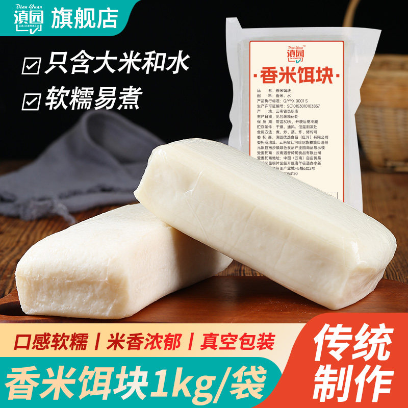 云南特产新鲜曲靖香米饵块1000g糍粑包谷粑粑炒年糕片财冉煮饵丝