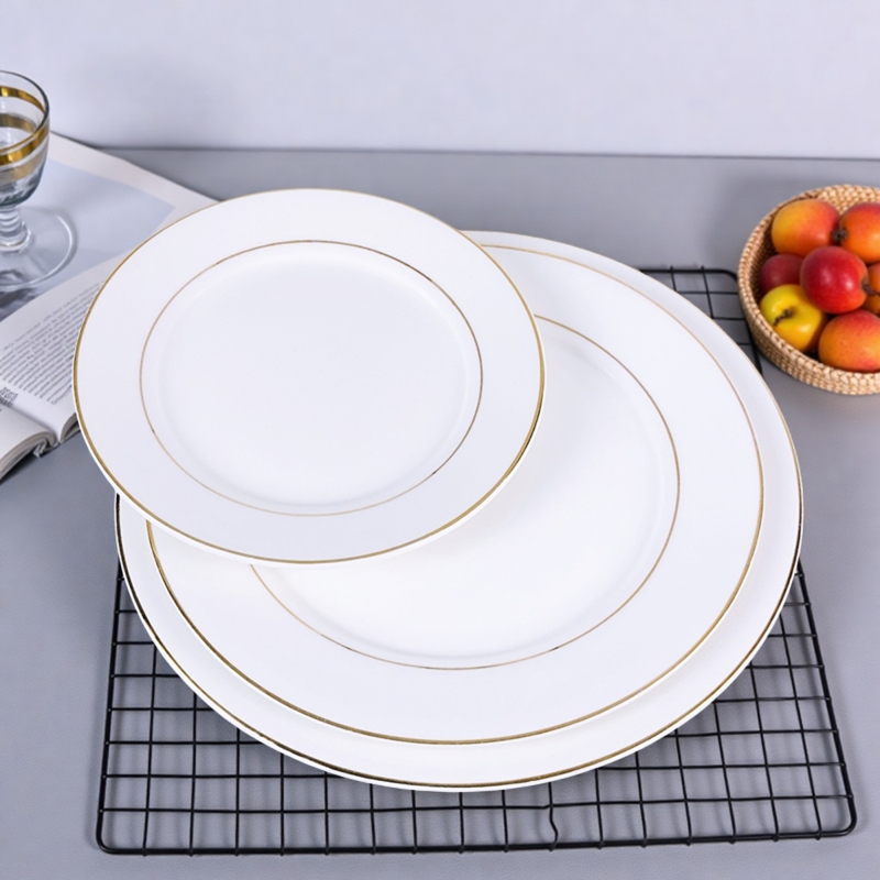 金边骨瓷盘子西餐餐盘欧式餐具高级感轻奢陶瓷牛排盘家用菜盘套装