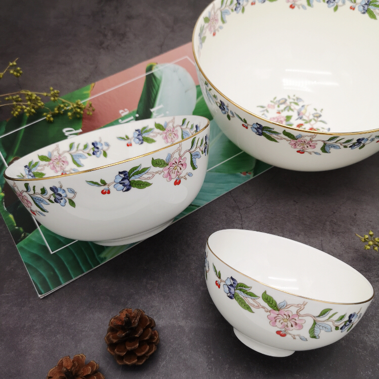 出口骨瓷金丝雀家用欧式餐具花边米饭碗 面碗大号汤碗 菜碗 单个