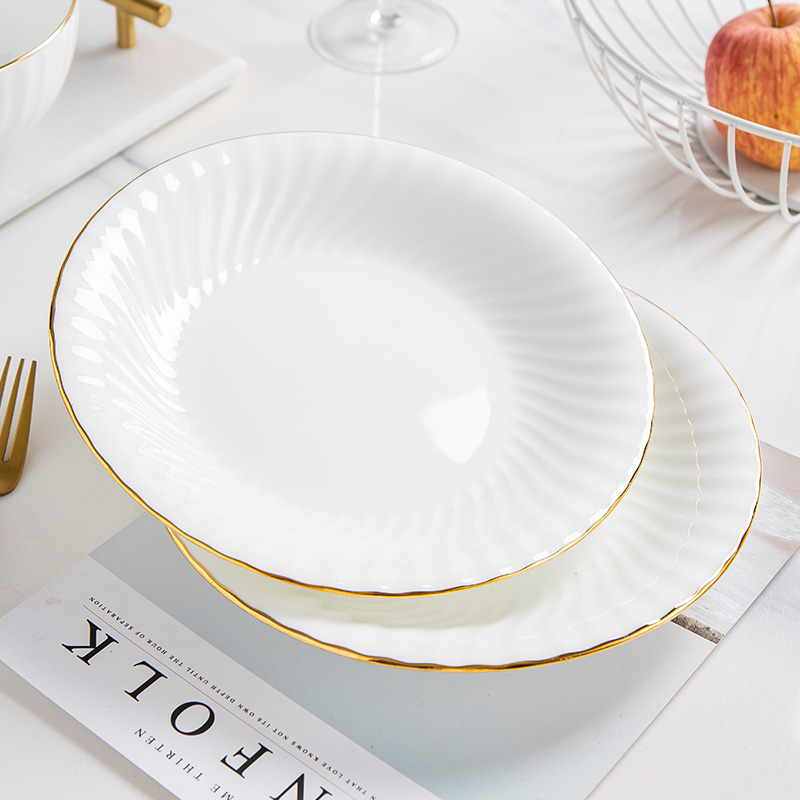 骨瓷窝盘套装家用8英寸深盘欧式餐具金边深口碟子10寸大盘子菜盘