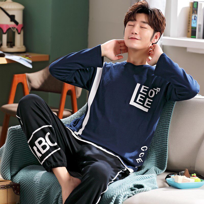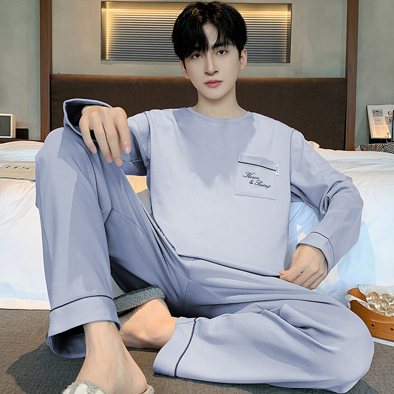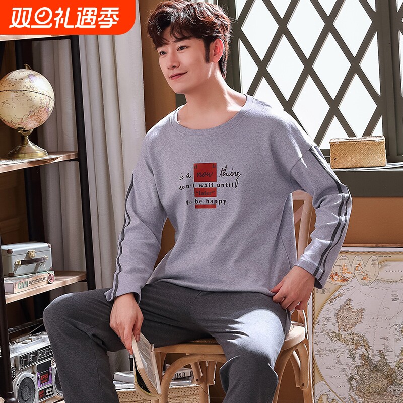 极速男士睡衣长袖纯棉青年春秋季加大码春L夏外穿全棉家居服套装