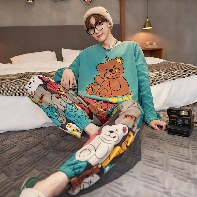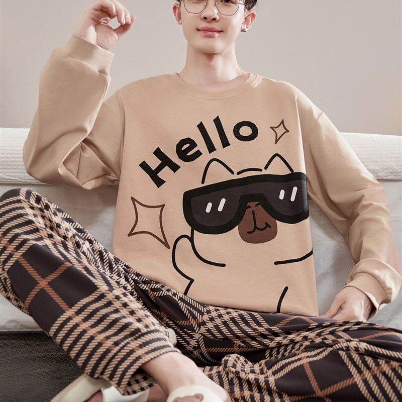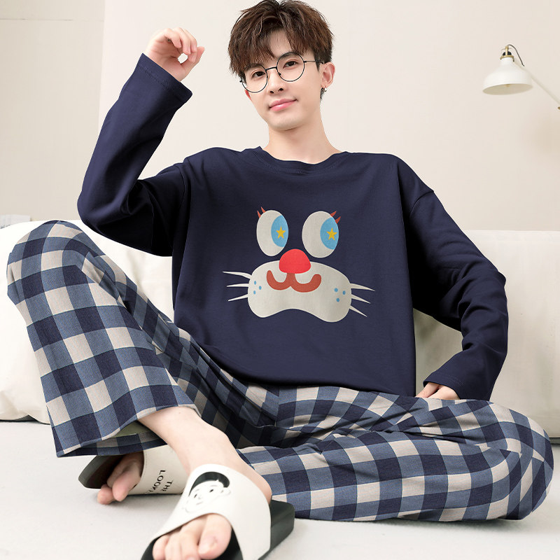 芬腾男士睡衣长袖纯棉春秋季大码青少年学生家居服卡通套装可外穿