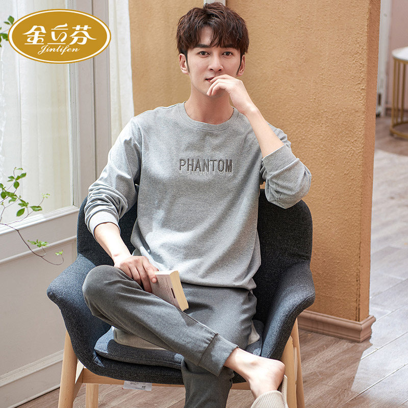 芬腾纯棉秋季男士睡衣春秋款长袖秋冬男款大码中年全棉家居服套装