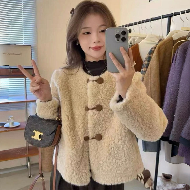 - 毛绒外套女羊羔毛