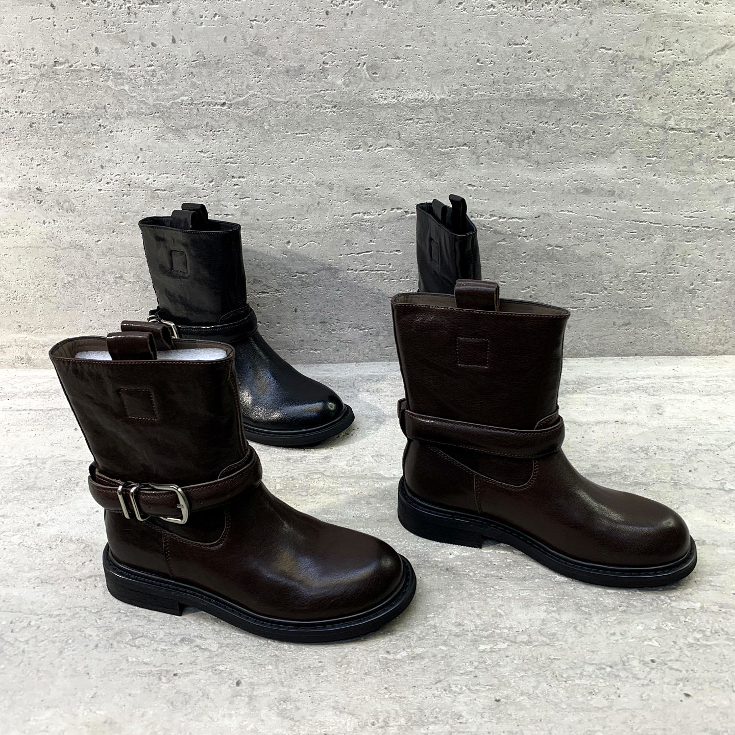 欧洲站女鞋2025秋季新款欧货真皮厚跟英伦风皮带扣时尚短靴马丁靴