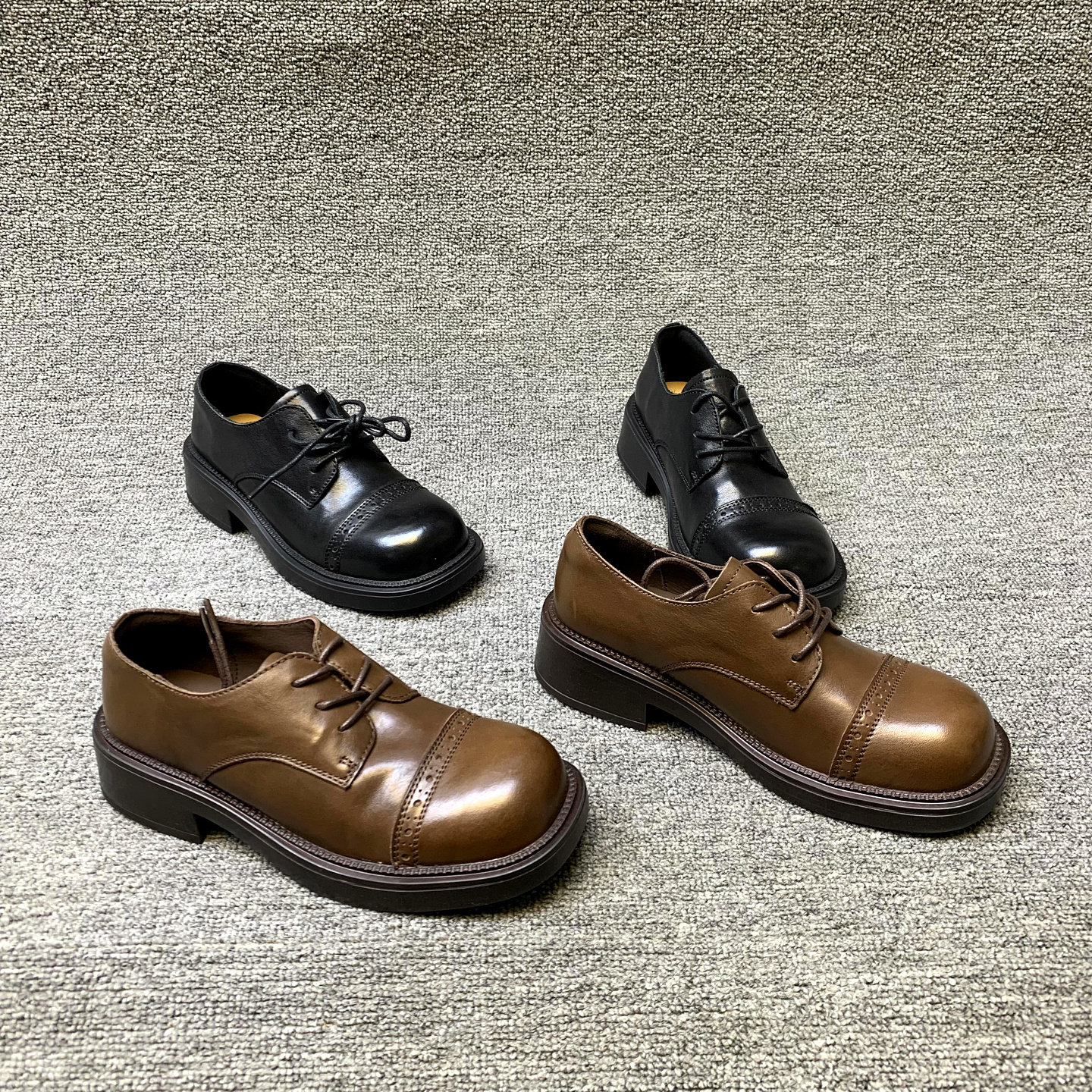 欧洲站女鞋2026春季新款欧货真皮系带英伦风厚跟时尚单鞋小皮鞋女