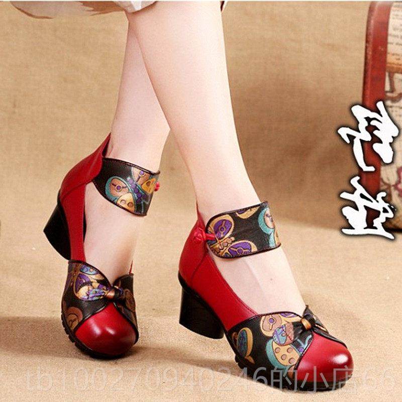 正品新低帮女鞋真皮圆魔术贴平底鞋女厚跟高跟软头舞鞋多才多艺的