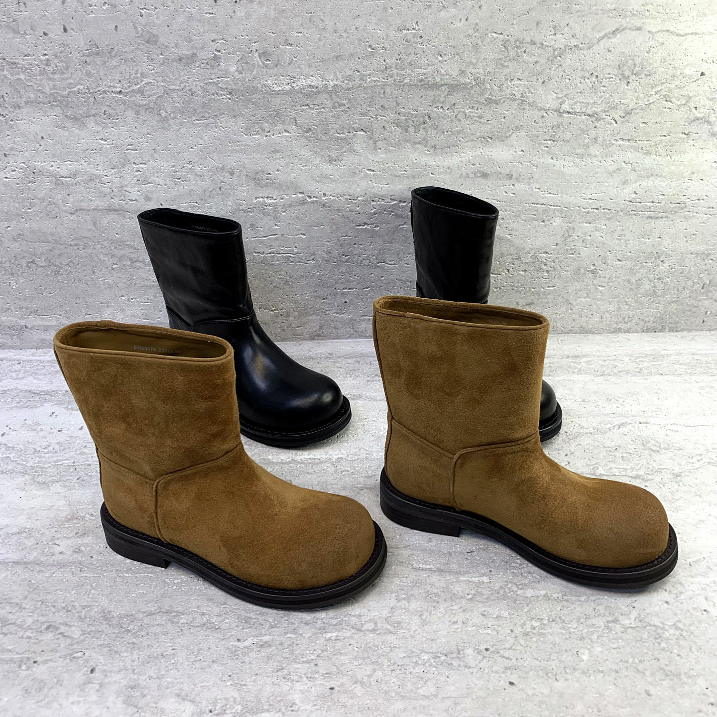 时尚品牌厚跟覆古棕色靴子女鞋2025新款春秋季单靴麂皮修身靴小短
