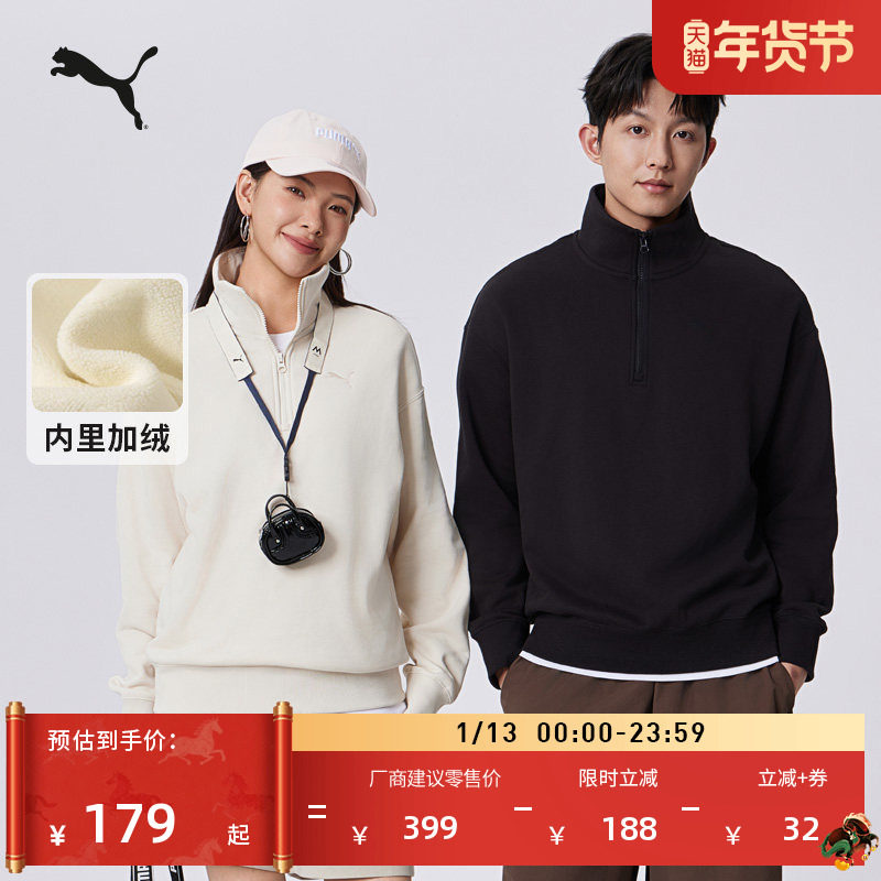 加绒保暖加厚运动卫衣男女PUMA彪马官方冬季半拉链运动上衣632293