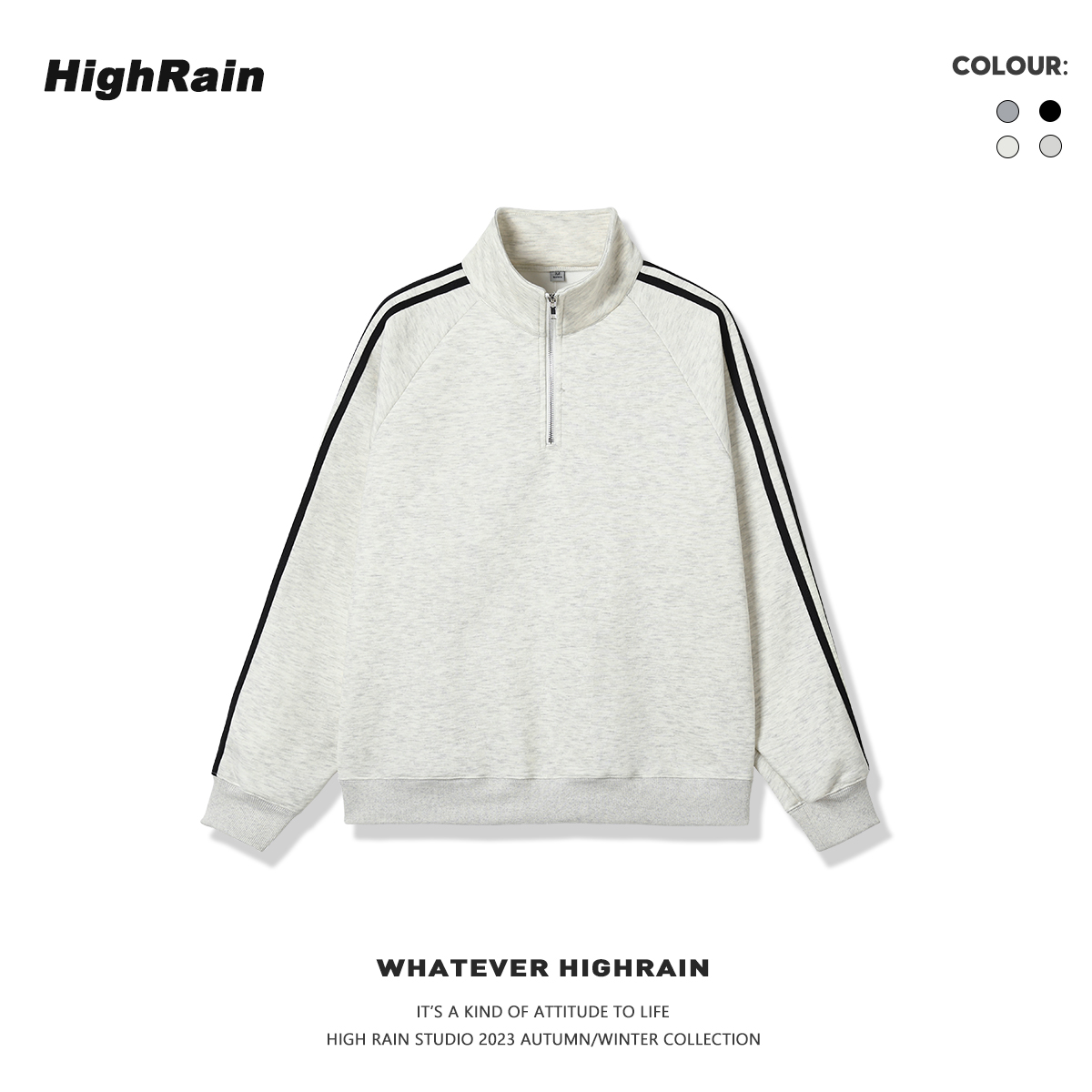NEVA HU【现货6折】半高领拉链加绒卫衣女宽松2023韩版翻领上衣