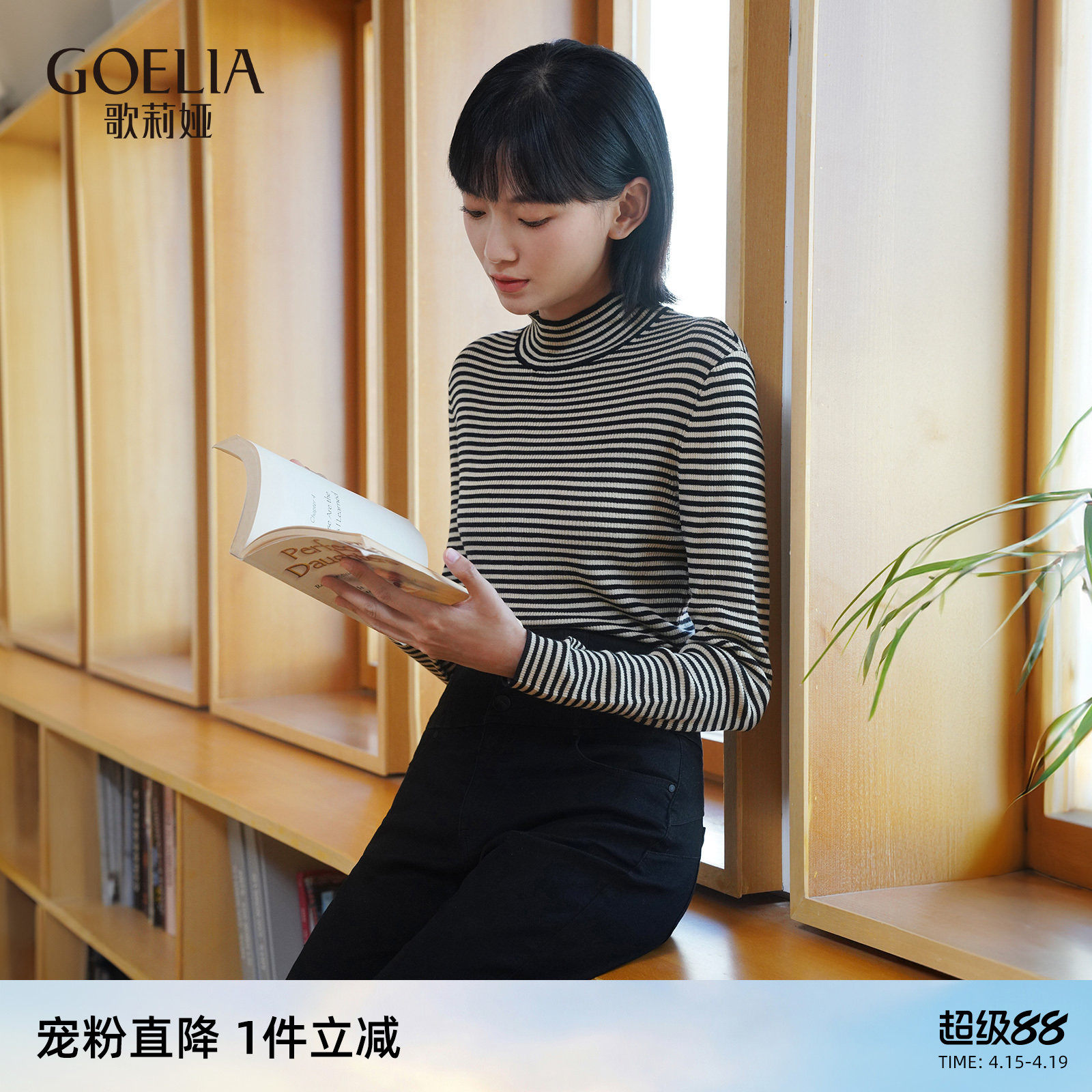奶咖色半高领条纹毛衣女MOFAN摩凡冬新款修身打底针织衫显瘦
