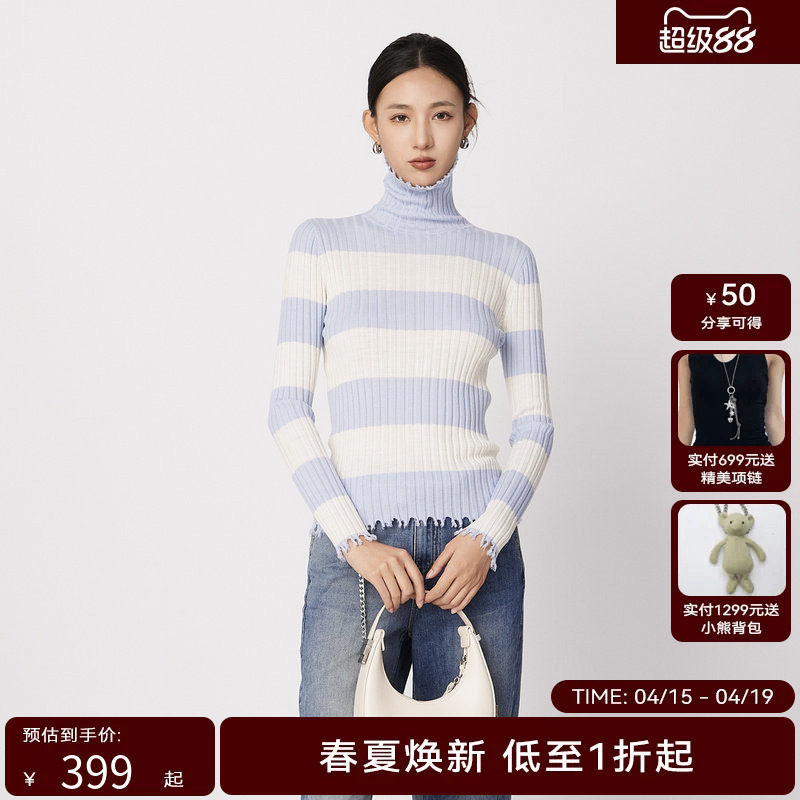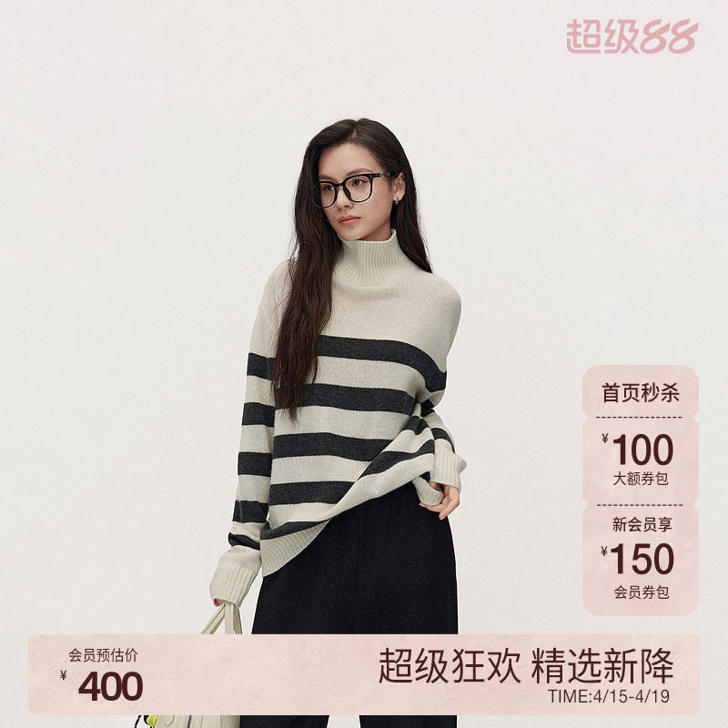 【可机洗100%羊绒衫】OCH.欧时力条纹高领毛衣女针织2025早春新款