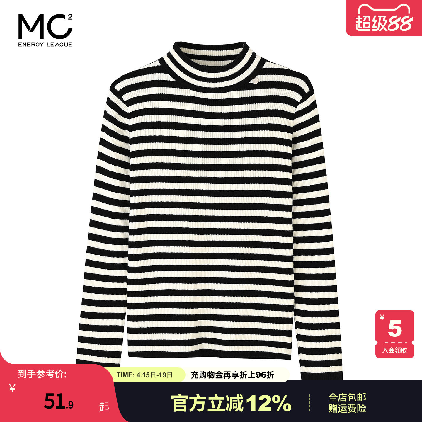 MQD女大童条纹满版印花半高领毛衣冬新款学院百搭加厚针织衫潮