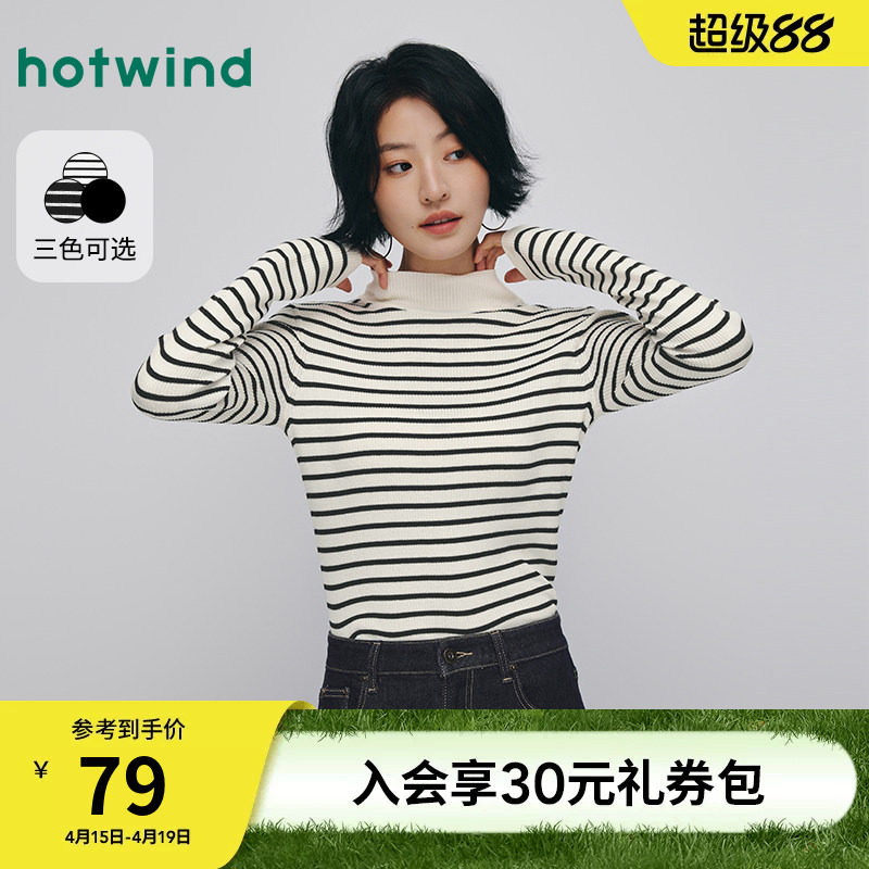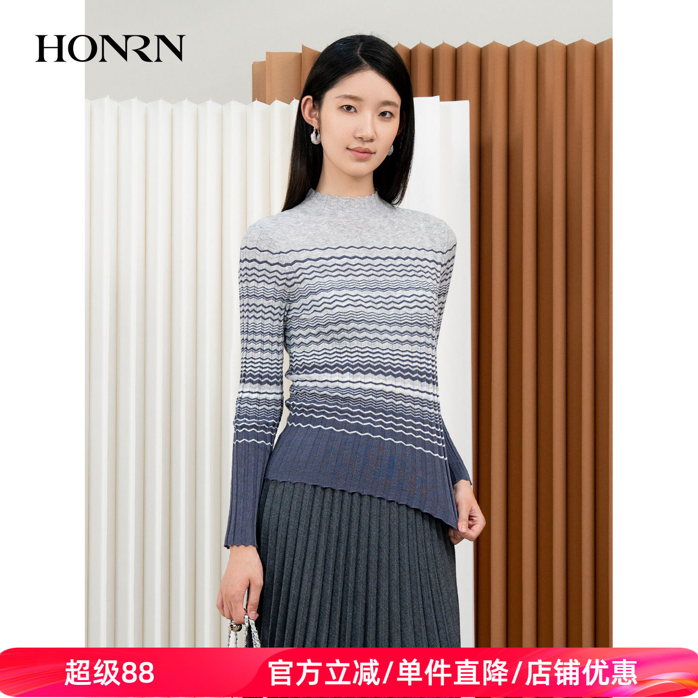 HONRN/红人半高领条纹长袖套头羊毛针织衫上衣女春秋HI33OM124