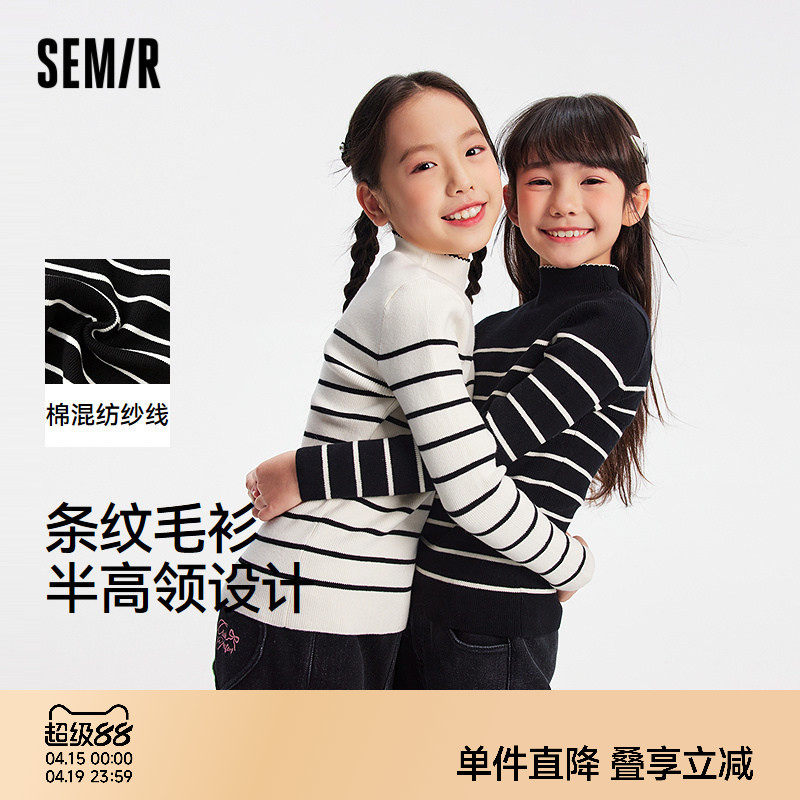 【商场同款】森马儿童毛衫2025新款半高领打底衫冬条纹针织衫女童