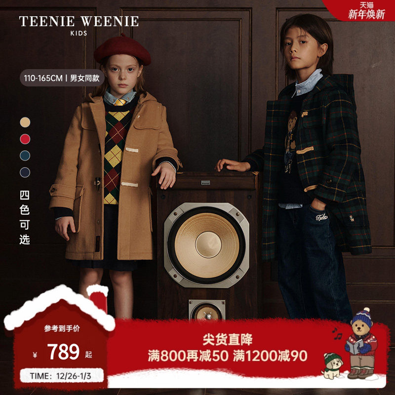 TeenieWeenie Kids小熊童装25年新秋冬男女童长款羊毛混纺呢大衣