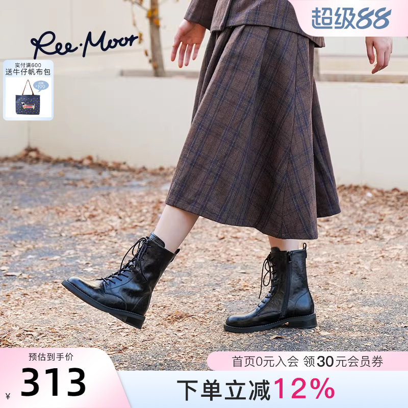 REEMOOR睿慕新款马丁靴秋冬英伦短筒靴复古粗跟女靴显瘦短靴女