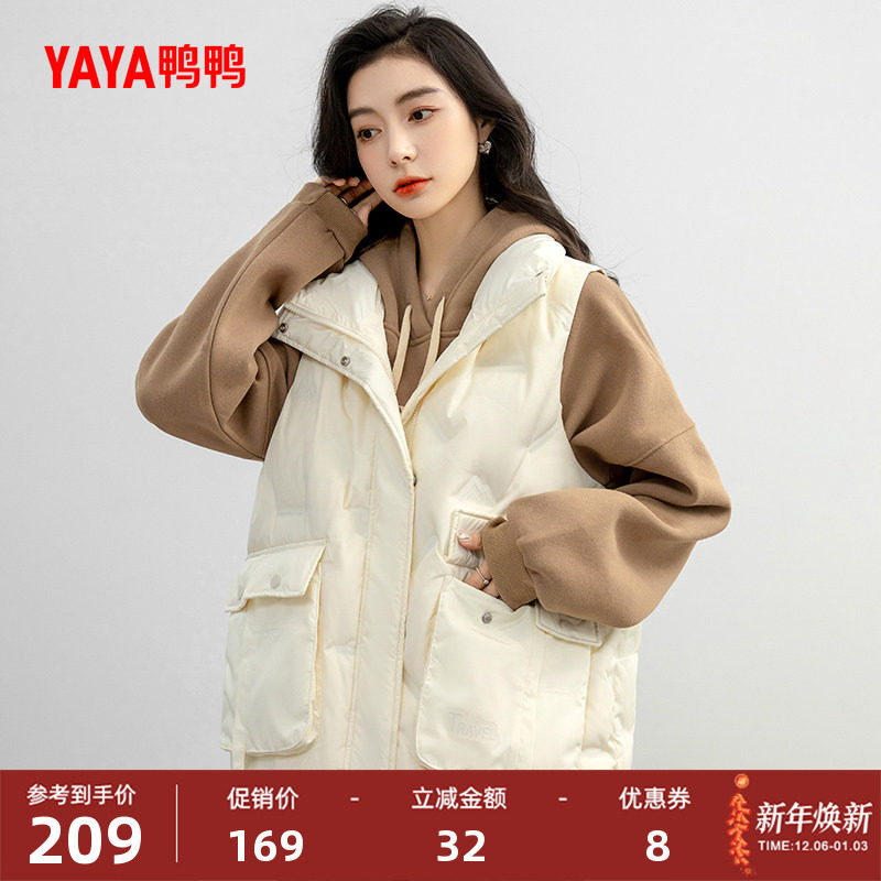 鸭鸭羽绒服马甲女士2025秋冬短款立领休闲舒适宽松鸭绒上衣外套J