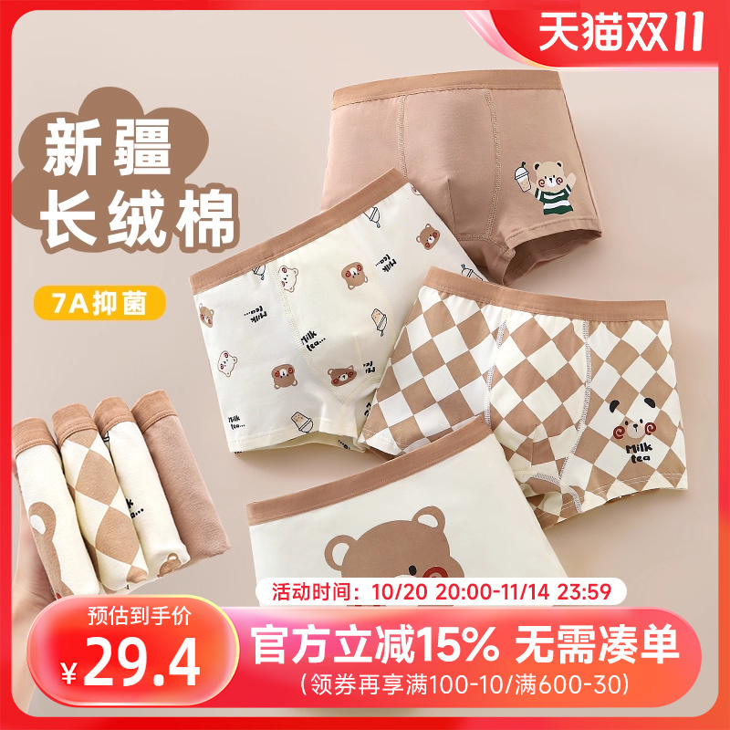 贝贝怡儿童内裤纯棉男童平角短裤春秋女宝宝小中大童四角裤4条装