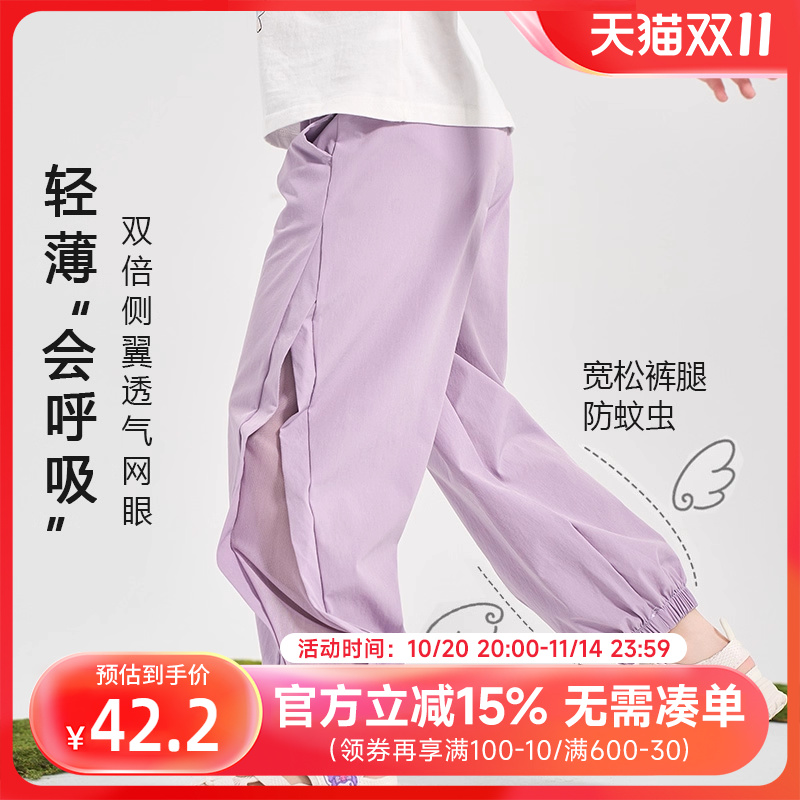 贝贝怡童装男童防蚊裤儿童薄款裤子新款女孩夏季冰丝速干长裤夏装