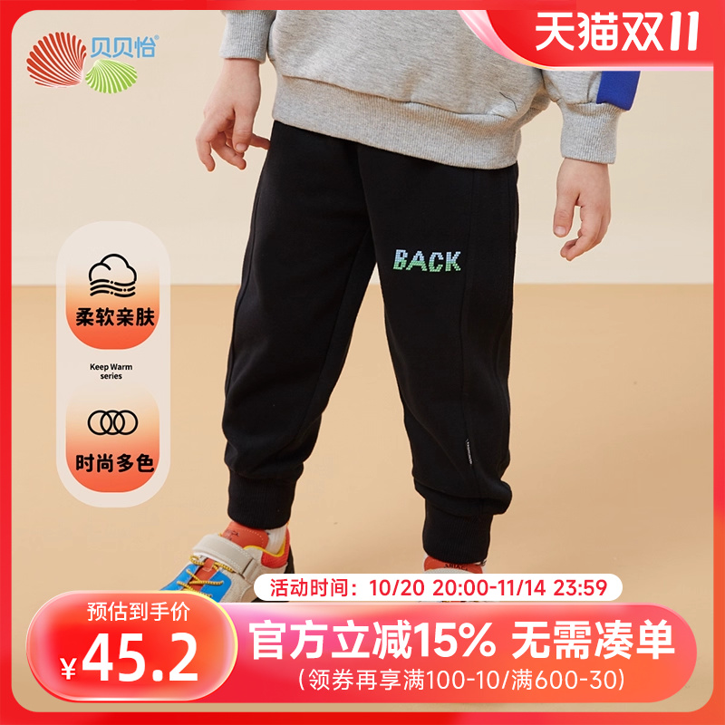 贝贝怡童装儿童裤子加绒2024新款男童女童长裤休闲裤秋冬保暖卫裤