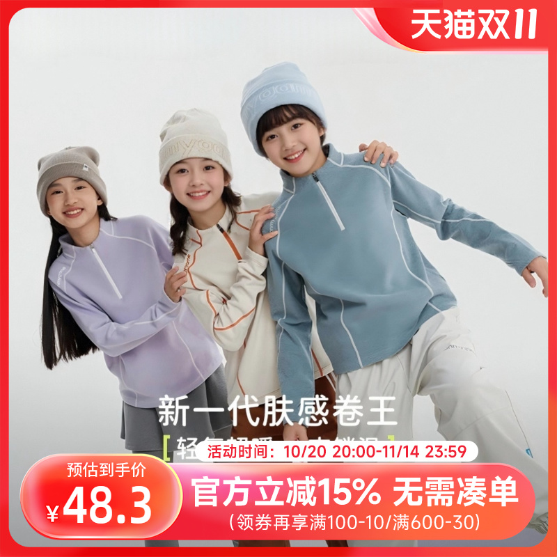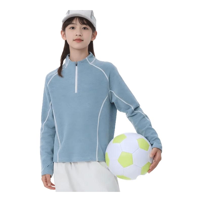 贝贝怡儿童加绒长袖T恤秋冬保暖打底衫男女童羊毛蚕丝半拉链上衣