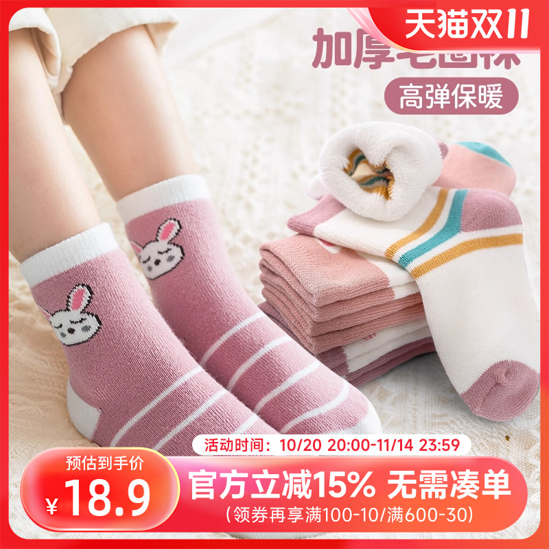 贝贝怡儿童袜子冬季加绒加厚保暖毛圈袜男女童秋冬中筒袜大童潮袜