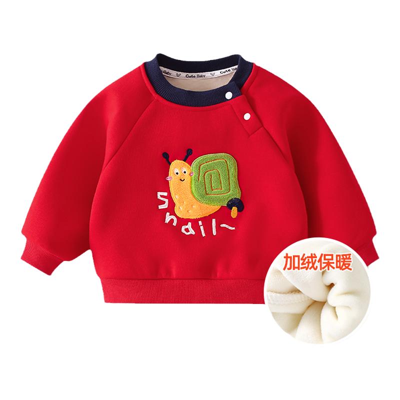 贝贝怡宝宝卫衣加绒秋冬季婴儿上衣加厚男女童打底杉儿童冬装红色
