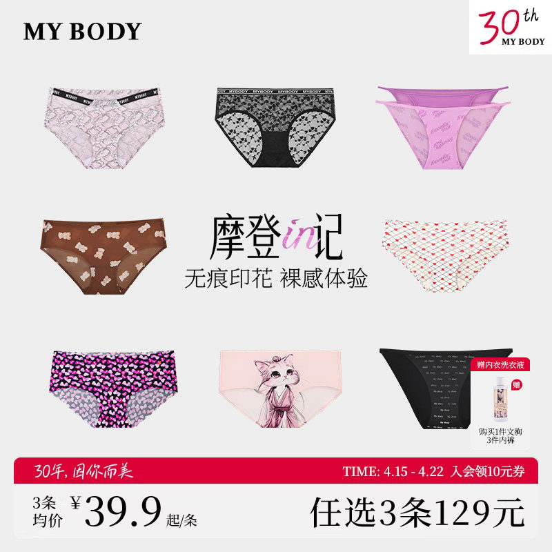 3件129|商场同款MYBODY内裤女时尚可爱萌宠印花无痕低腰三角内裤