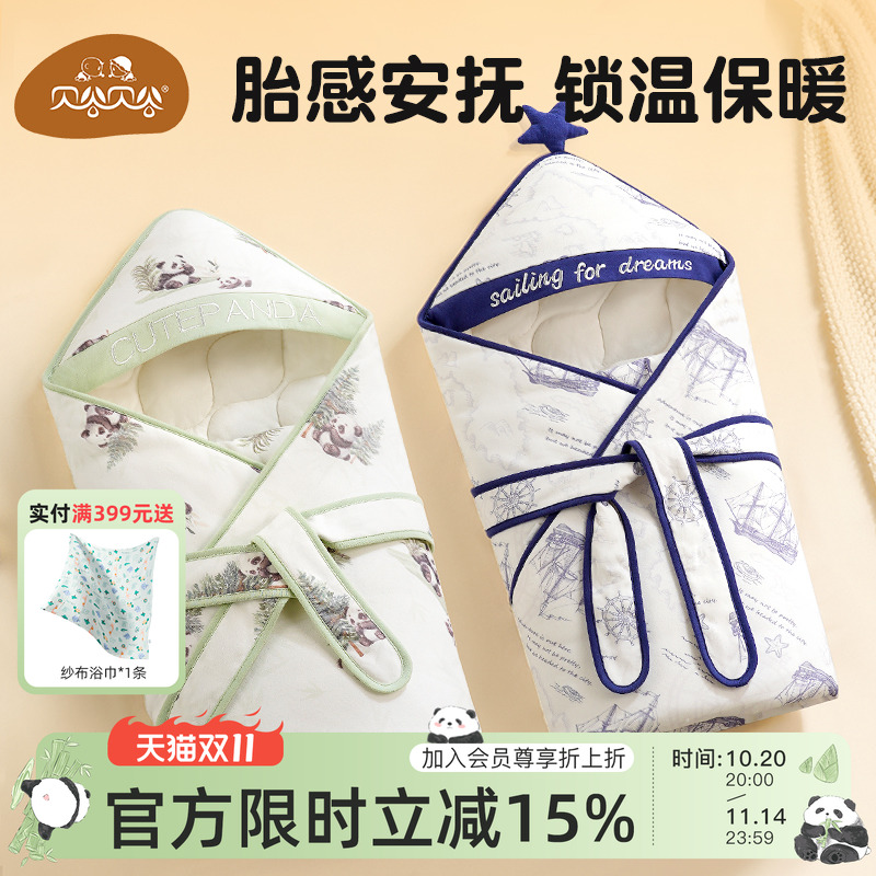 全棉时代婴儿包被新生宝宝秋冬季外出包单纯棉防惊跳抱被四季襁褓