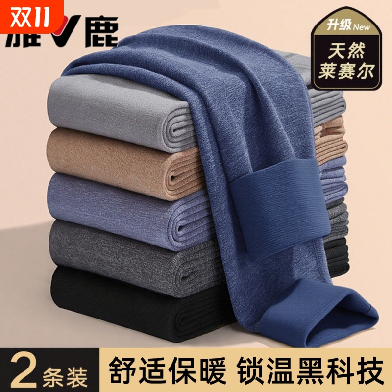 雅鹿无痕男士保暖裤秋裤男款德绒发热打底裤薄款衬线裤冬季家居裤