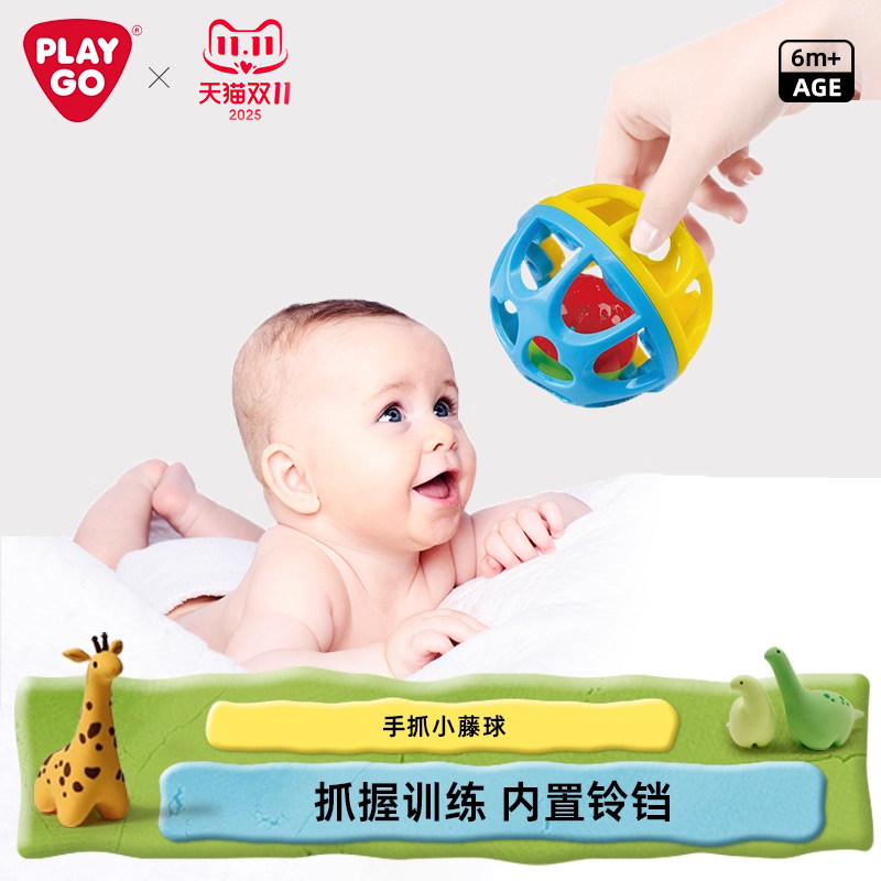 PLAYGO婴儿手抓球玩具小藤球宝宝铃铛球学爬行婴幼童触觉球男女孩