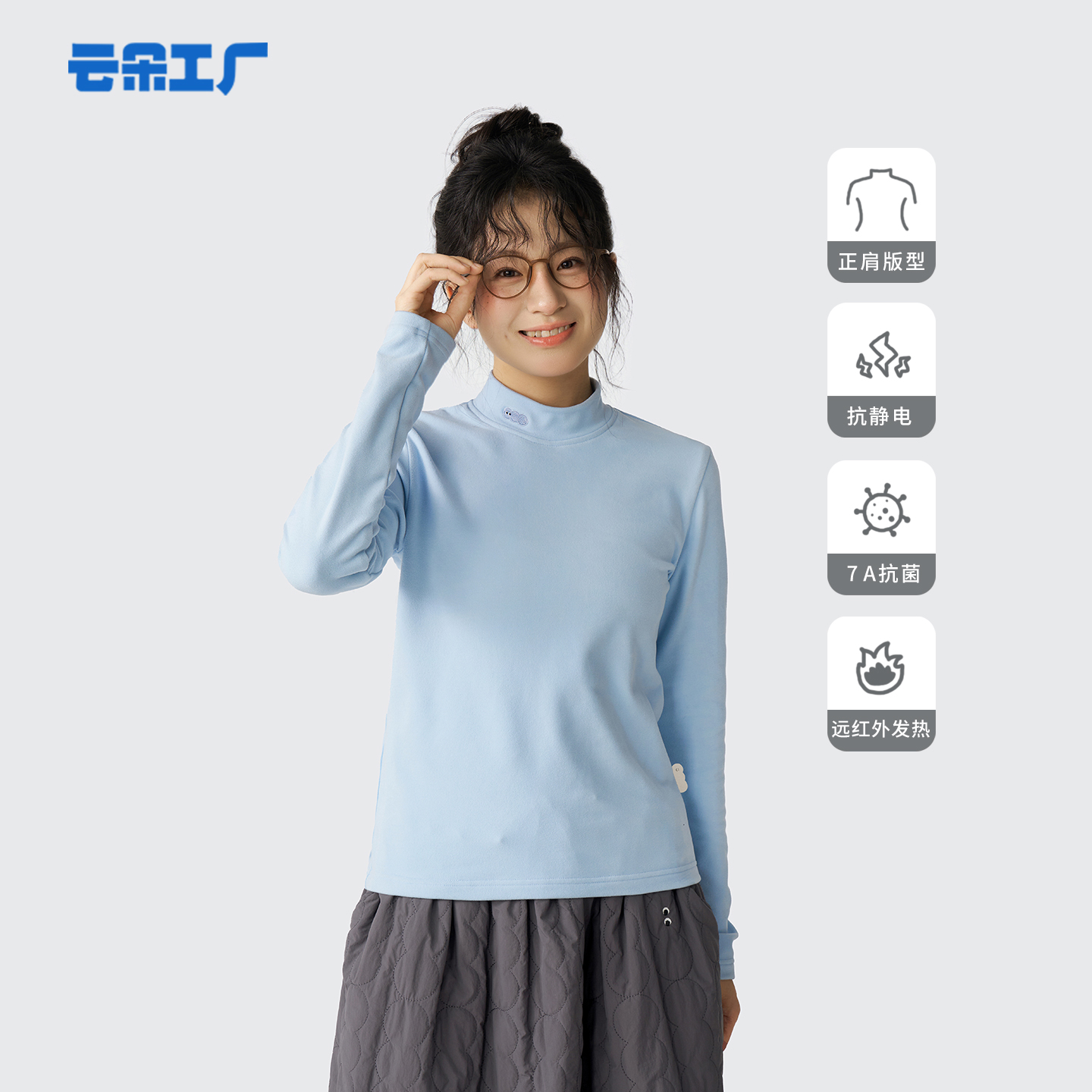 云朵工厂云朵半高领打底衫女保暖上衣发热秋衣抗静电长袖内搭冬季