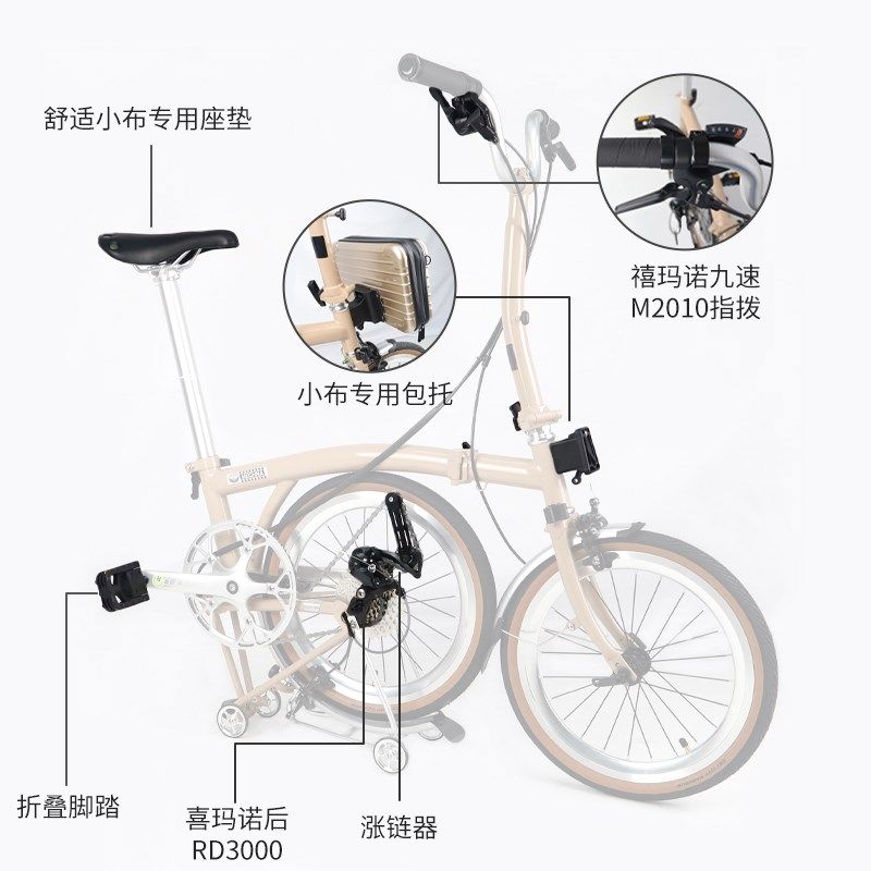 雷军同款 小布gHITO 16/20寸折叠自行车 超轻便携复古9变速自行车