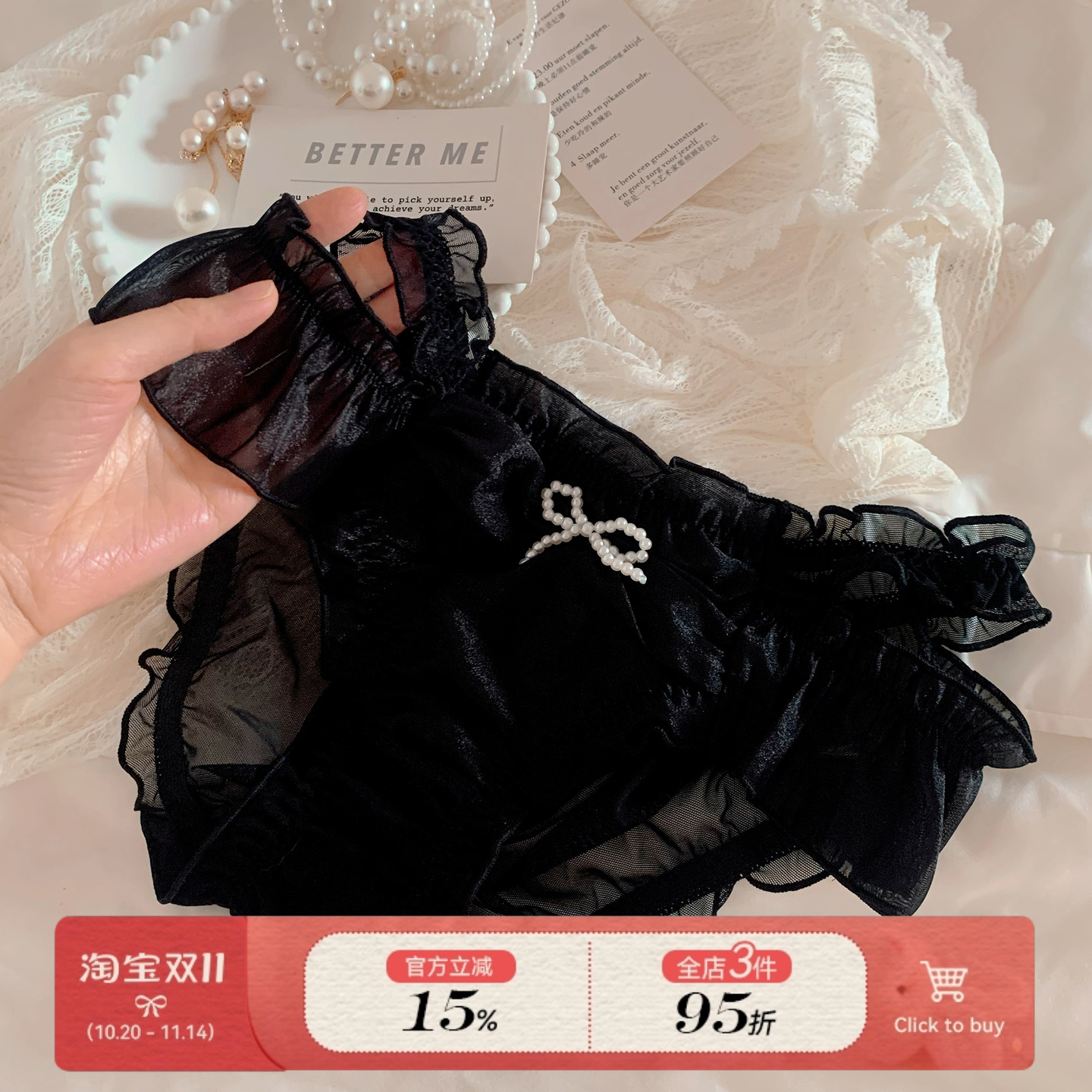 日系宫廷公主高端丝质绸缎内裤女性感蕾丝时尚水钻蝴蝶结女士内裤