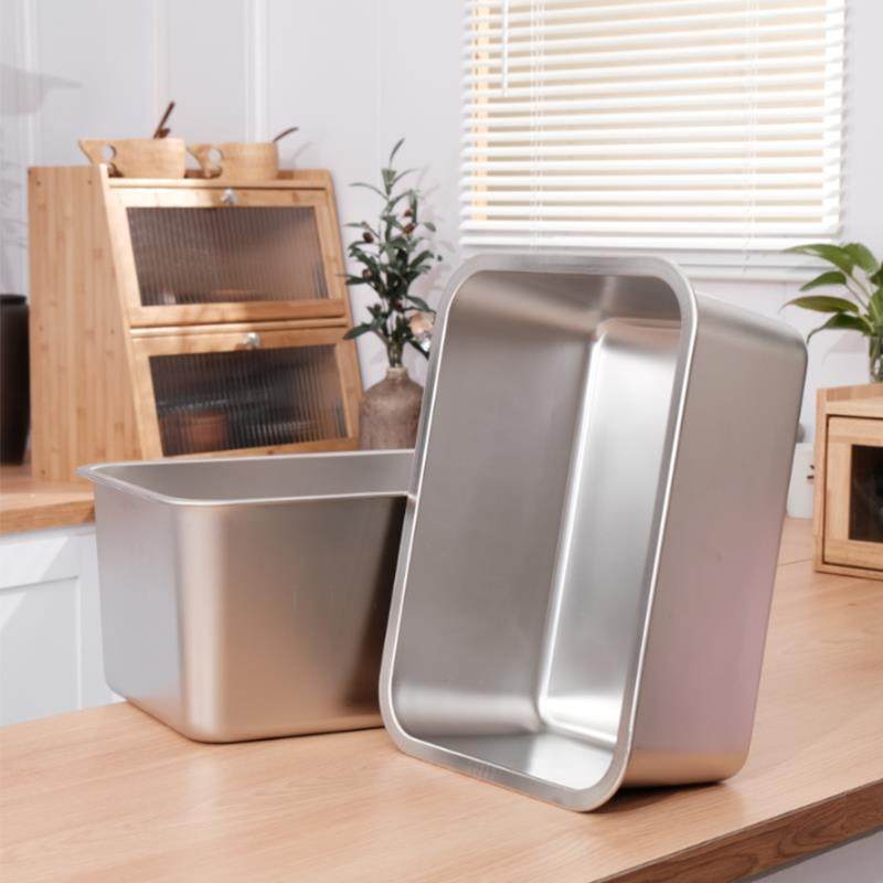 304不锈钢方盘平底盘子长方形盒子带盖托盘提拉米苏商用深盘铁盆