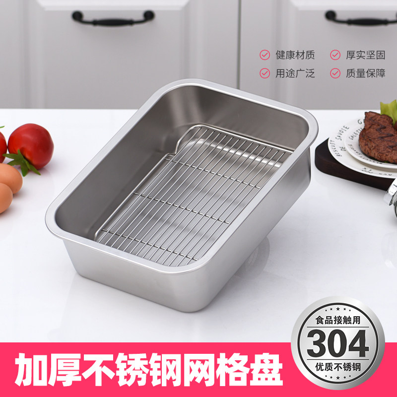304不锈钢长方形盘子带网隔水盆滤油炸盆沥油沥水洗深浅托盘带盖
