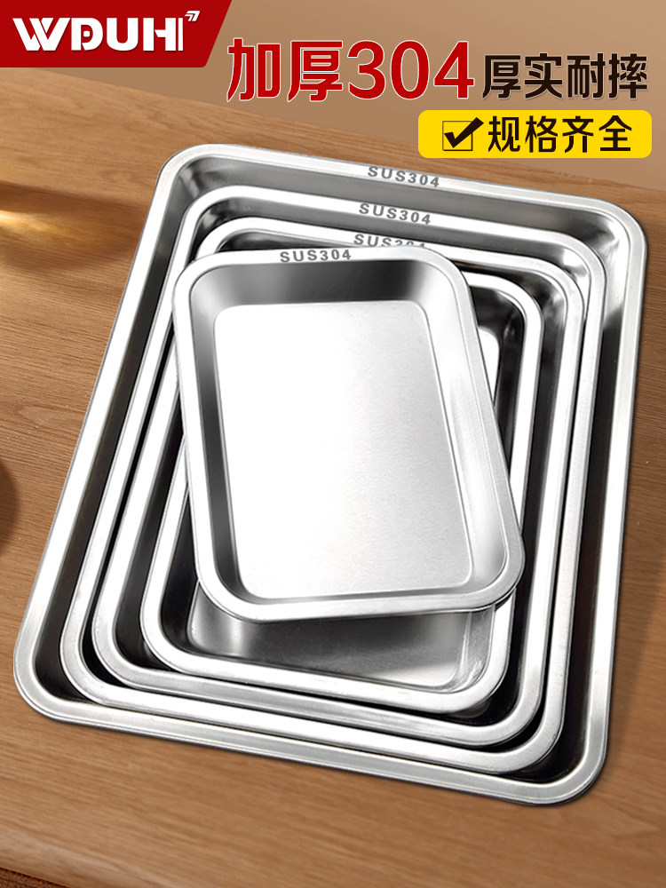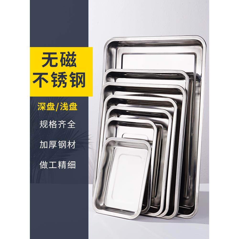 304食品级不锈钢托盘长方形商用加厚蒸饭铁盘家用蒸盘平底方盘子